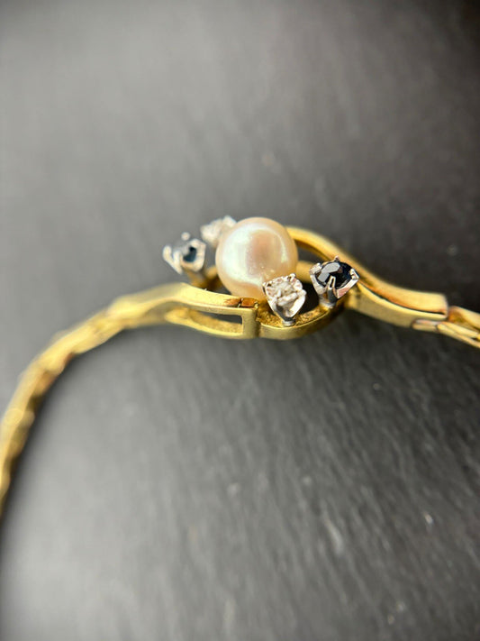 Armband Gelbgold Diamanten/Saphire Südseeperle 8K/333 19cm
