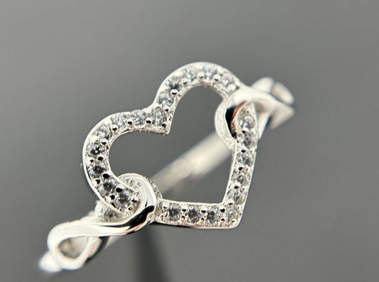 Silberring 925er Herzring Brillantschliff Weiß rhodiniert polierter Finish