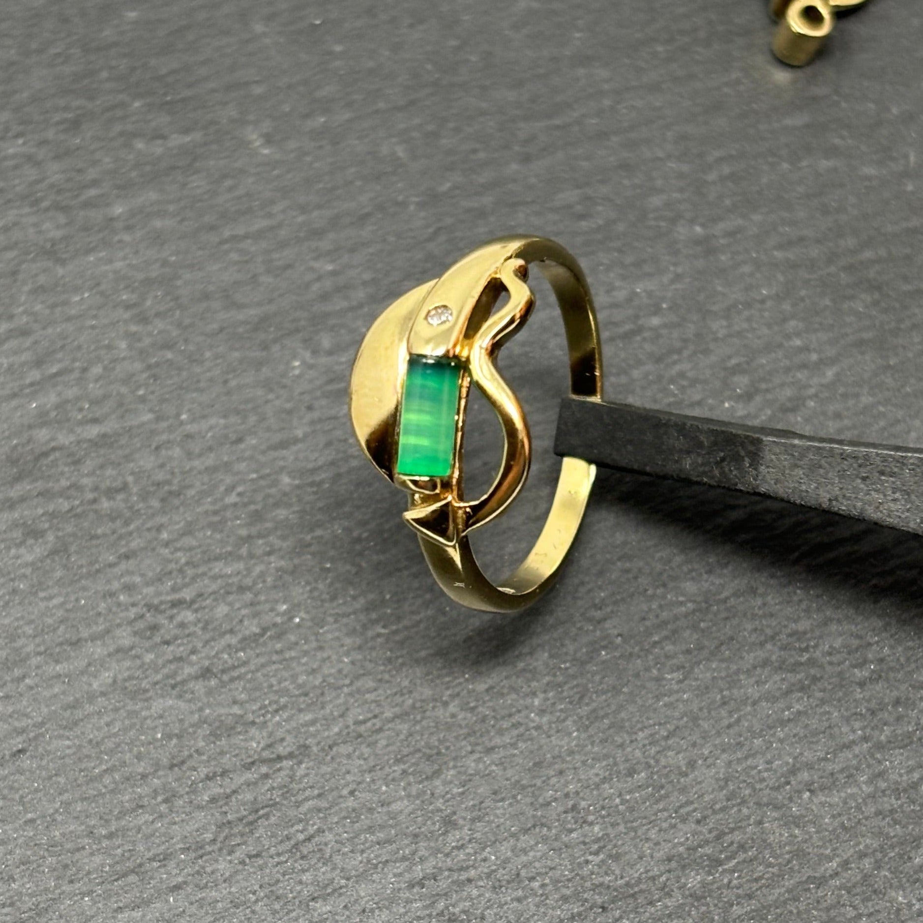 Verkauft! Designer Schmuckset 4 Teilig Grüne Steine/Zirkonia, Collier, Ohrringe und Ring